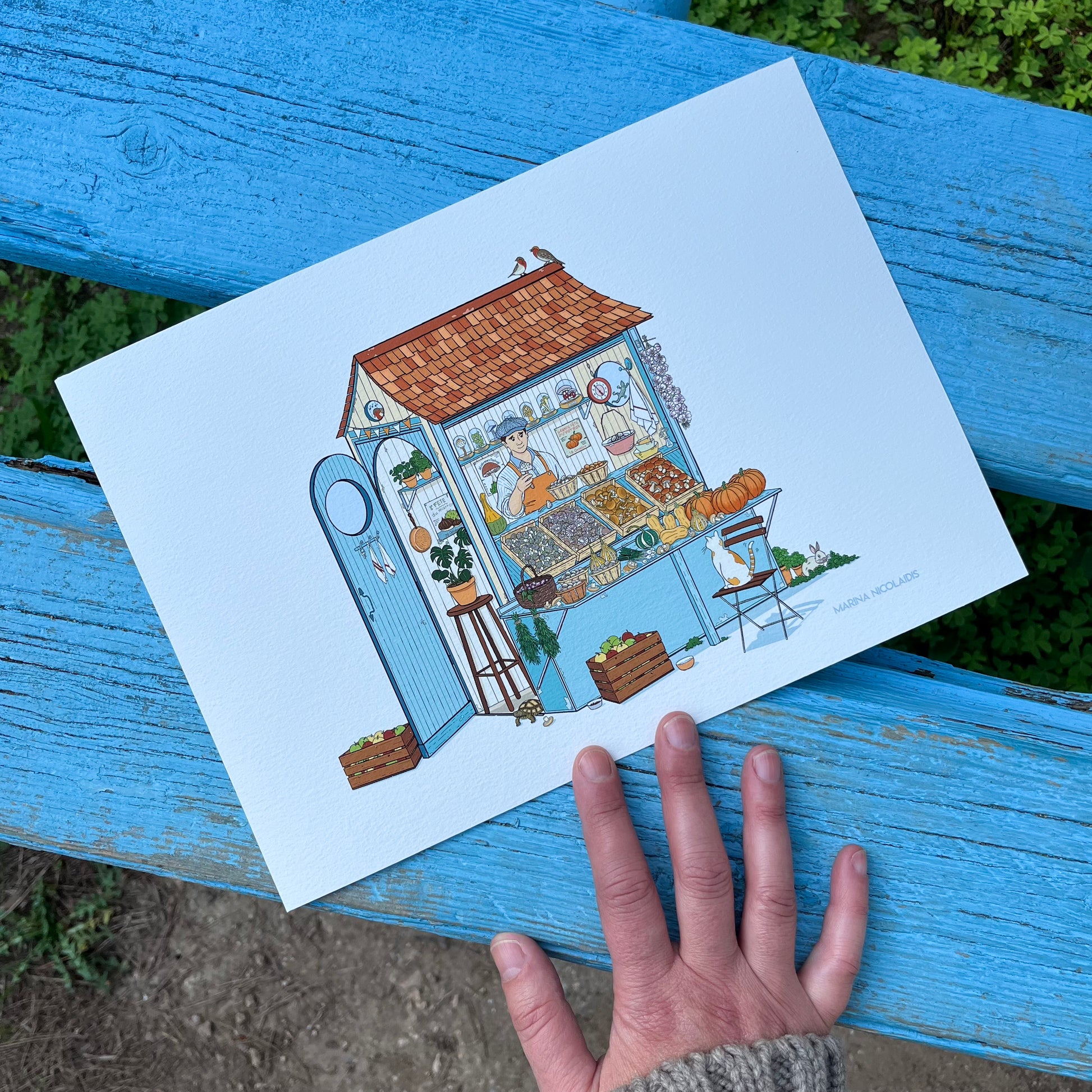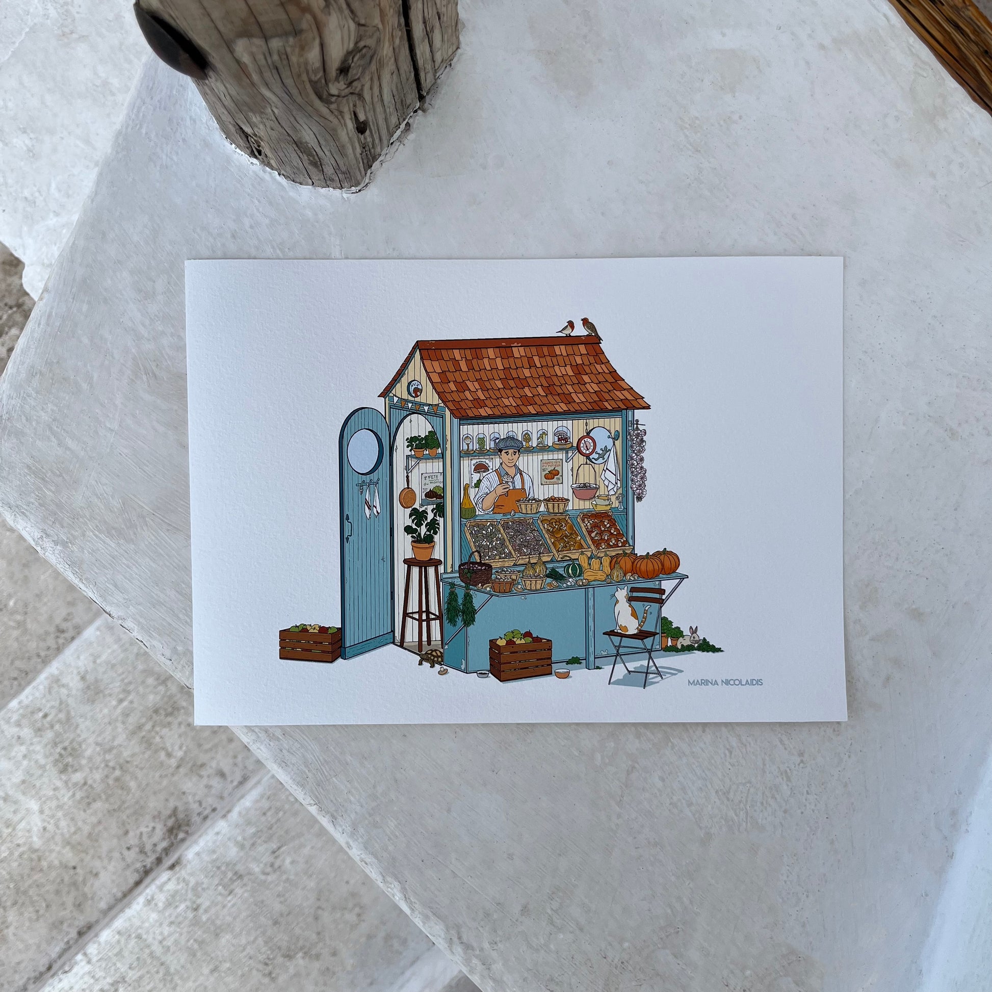 All the prints are signed at the back with my name Marina Nicolaïdis and date. If you wish I can also write a personal dedication. You can tell me the text by message!
